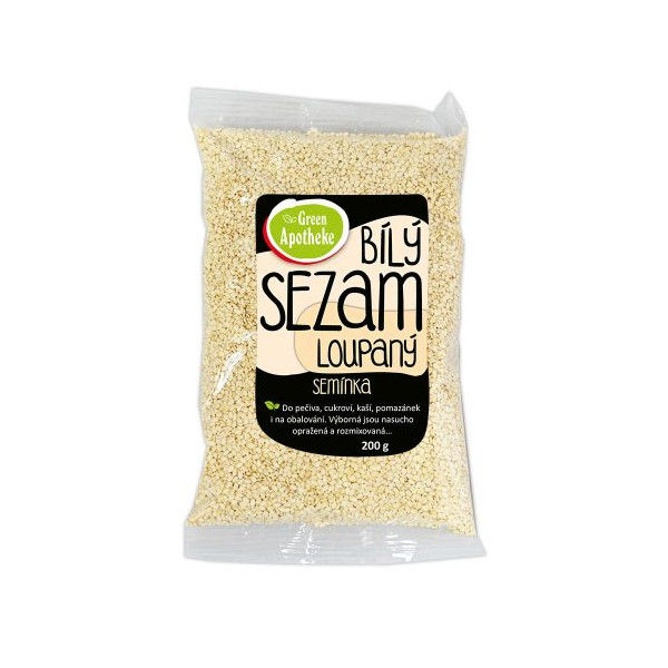 Složení: Semena sezamu bílého loupaná. Do pečiva, cukroví, kaší, pomazánek i na obalování. Výborná jsou nasucho opražená a rozmixovaná. Posyp pečiva. Jako koření je oblíben již po mnoho staletí především na východě. Lze z něj vyrábět dresinky, sušenky, sezamové mléko, přidávat do salátů, salátových zálivek a pečiva. Pražený sezam má výrazné aroma a chuť.