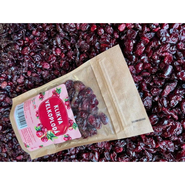 Složení: Plody klikvy velkoplodé – brusinky sušené, cukr.